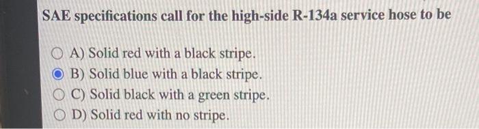 Low side R-134a service hose. All of the above All of the above 5. The answer is Letter B.